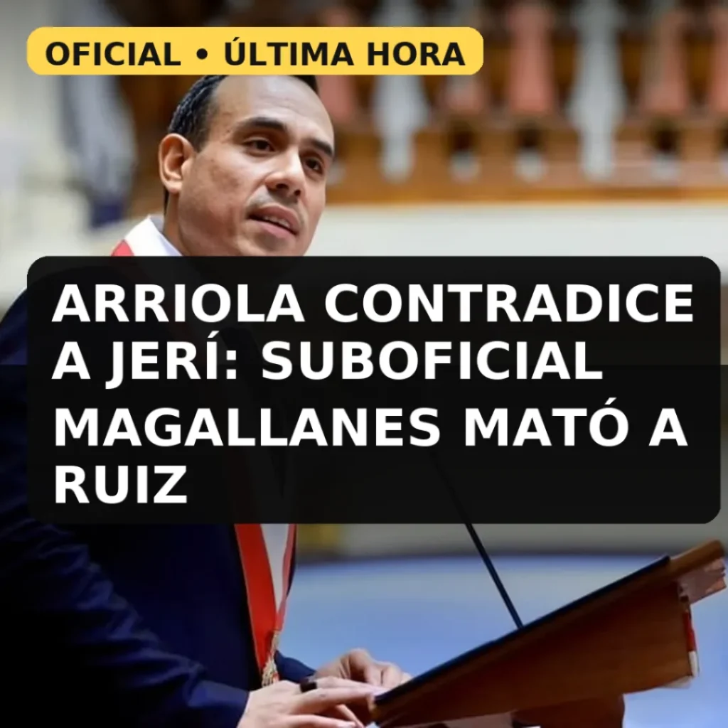 ¿Quién? Óscar Arriola, comandante general de la PNP. ¿Qué? Confirmó que el suboficial Luis Magallanes (Dirincri) efectuó el disparo que causó la muerte de Eduardo Ruiz. ¿Cuándo y dónde? El 15 de octubre, en la Plaza Francia (Lima), durante protestas contra el Gobierno y el Congreso. ¿Por qué? La confirmación policial se produjo tras la revisión de videos de seguridad y registros de la intervención. ¿Cómo? Magallanes fue separado de la institución, tiene notificación de detención; un segundo efectivo que disparó al aire también fue intervenido.